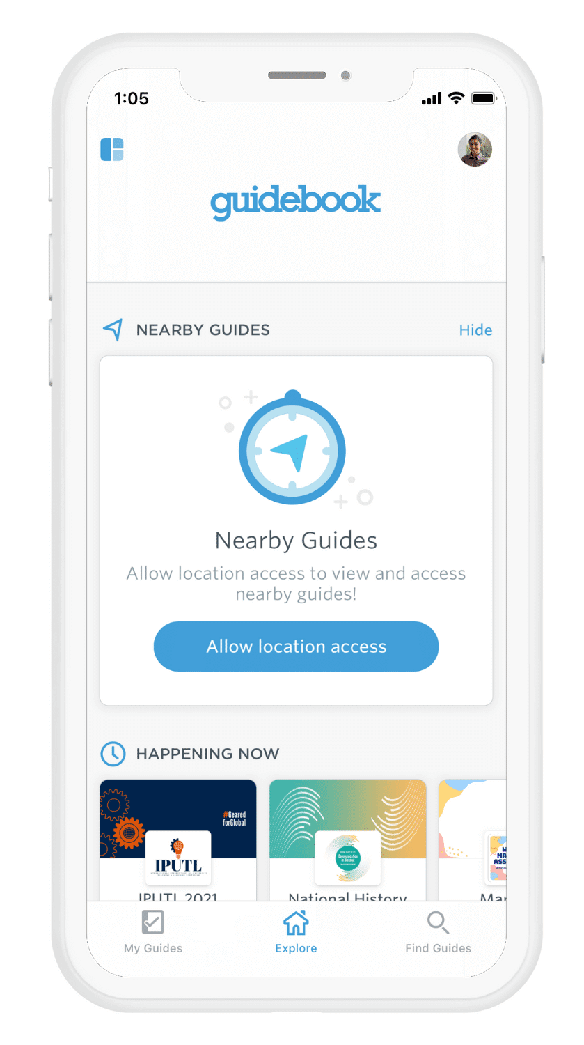 Search for Nearby Guides within the Guidebook app. Users can now enable their device location and explore public guides that are geographically nearby! This is a useful addition as students and employees make their way back onto campuses in the fall. Learn more about nearby guides.INTEGRATED STREAMING