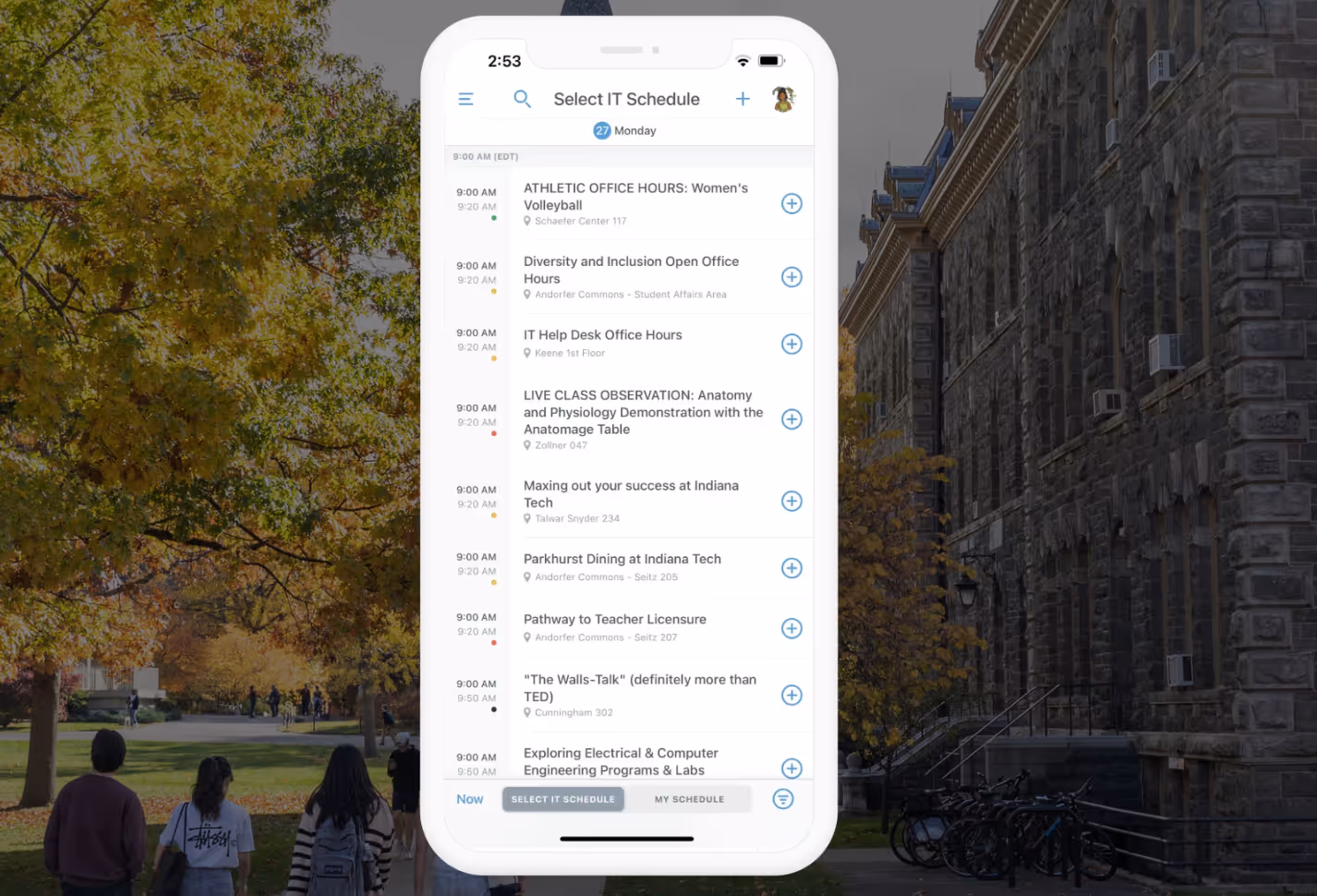 Showcase the fun and informational sessions you have planned for your prospective and admitted students, and even create personalized schedules if needed.