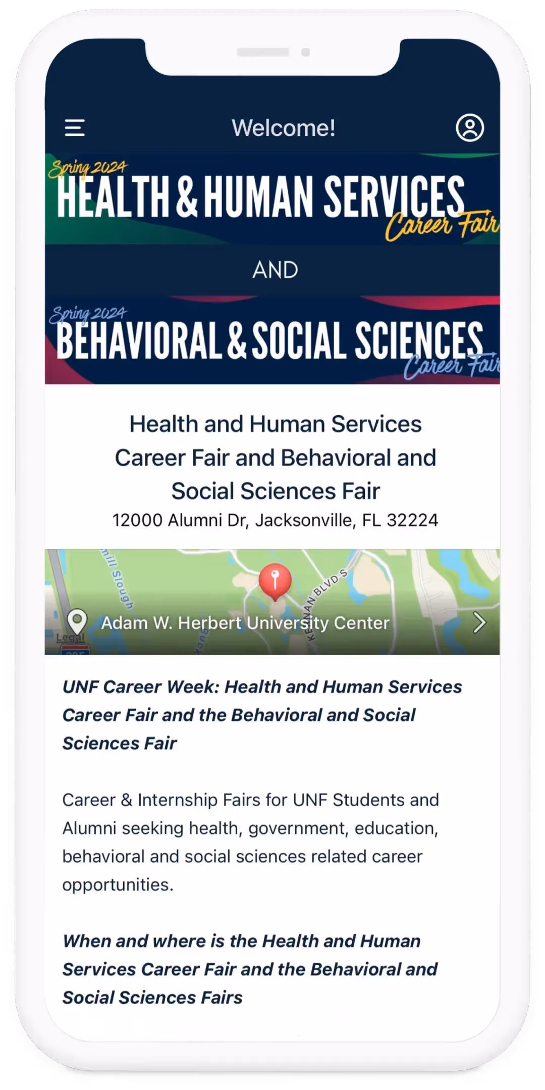 Interactive maps and personalized schedules allow students to find employers quickly and plan their day in advance, helping them make the most of their time at the event.